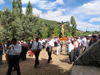 vestidos con el traje típico. En la mesa se subastan banzos.